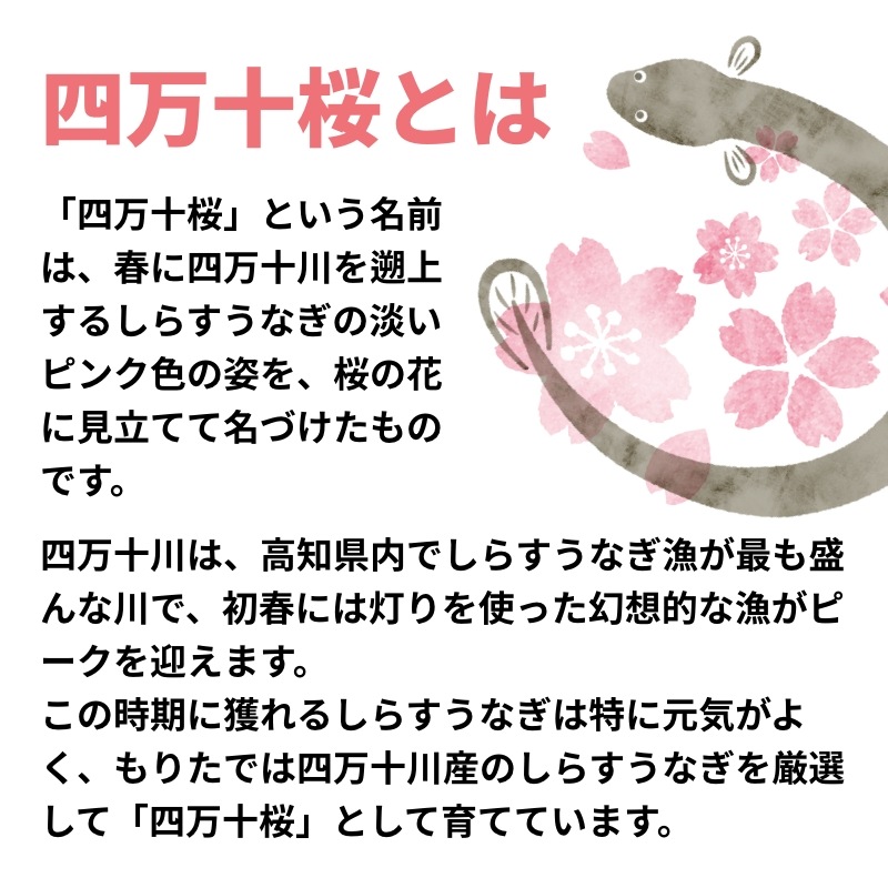 この名は、春に四万十川を遡上するしらすうなぎが淡い桜色に染まる美しい姿を桜に見立てて名づけられました。