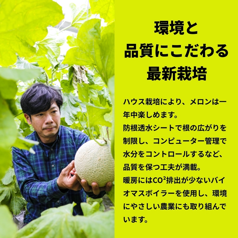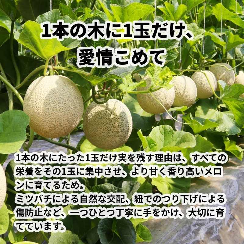 西島園芸団地のメロンは1本の木から最も良質な果実1個だけを残し、